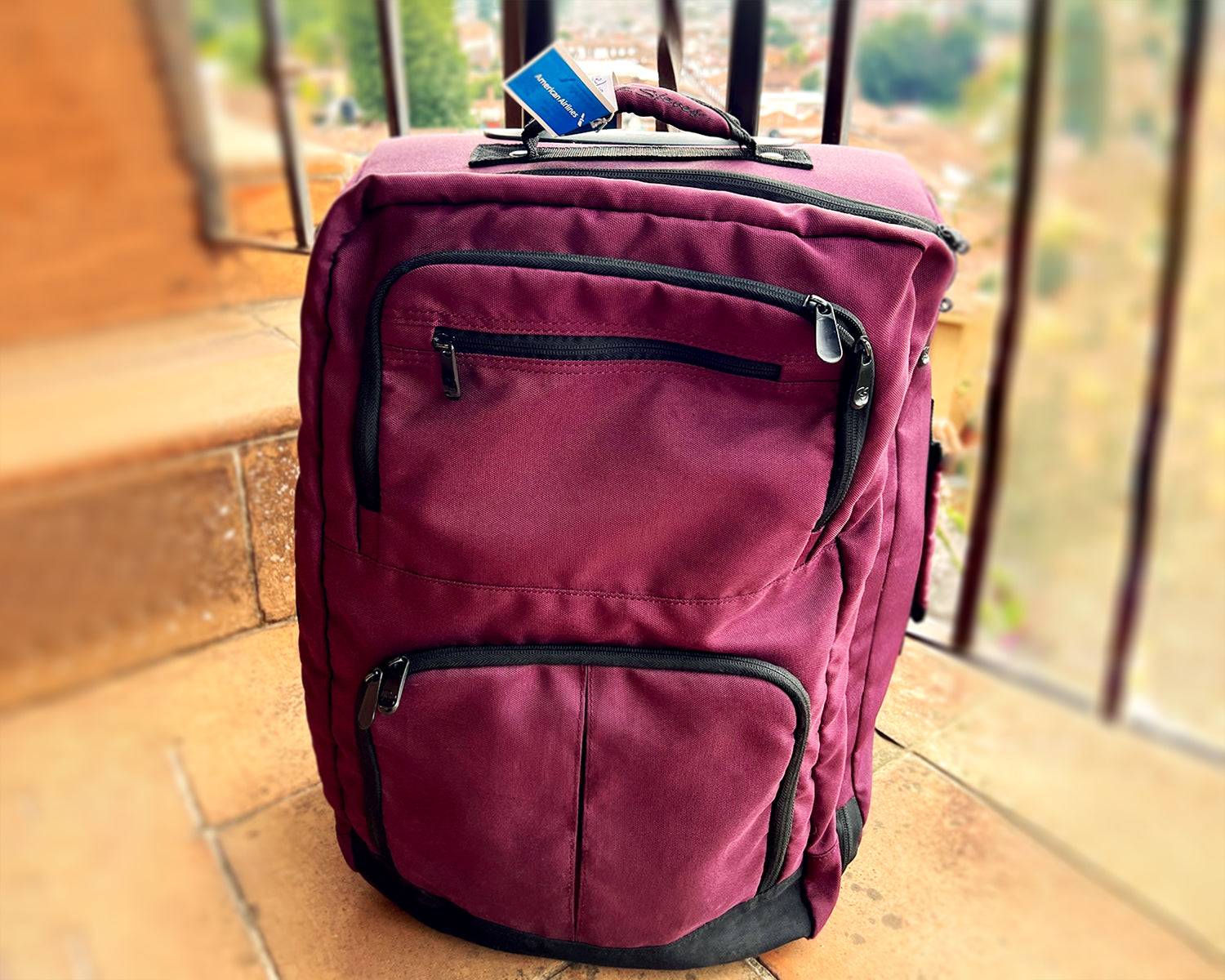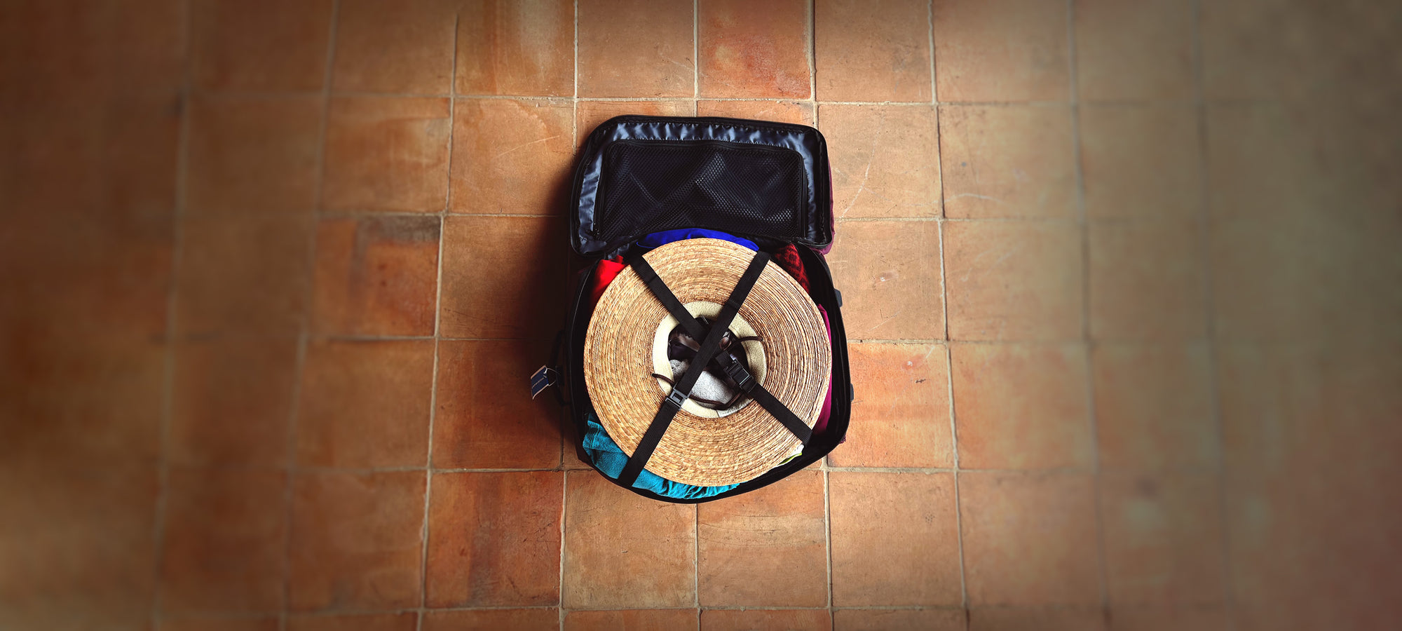 Soft suitcase with wide brimmed Tula hat packed inside!