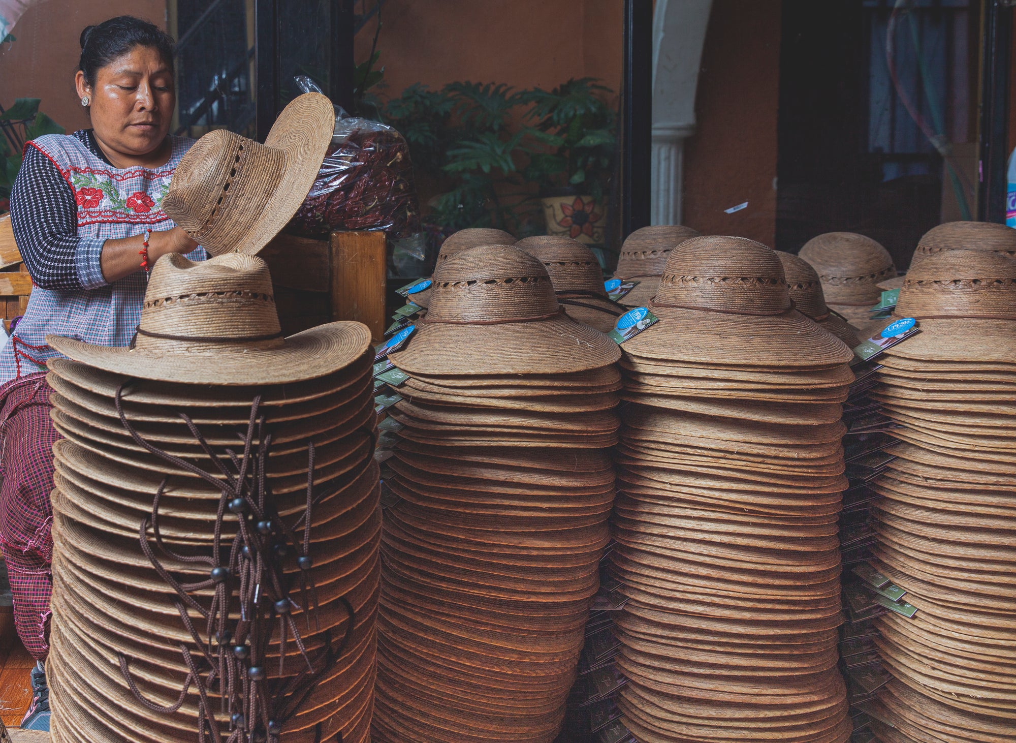 Any palm hats that don't make the cut and have a slight flaw are collected the entire year and are joyfully thrown to the waiting crowd during the Corpus Christi celebration. During this celebration which takes place all around Lake Patzcuaro in June the people gather to receive the goods that are thrown by the artisans. I have been told that it is a way to give back and to share your good fortune with your fellow community members.